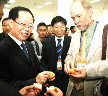 会上,农业部副部长危朝安和外国专家还品尝了湖北宜都的柑橘,外国专家对中国的柑橘竖起了大拇指。省农业厅果品办主任、省果业协会秘书长李传友透露,自10月20日四川广元“蛆柑”事件发生后,我省蜜橘外销全面停滞,如果事态继续发展下去,全省橘农损失将达15亿。