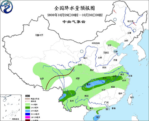 中新网10月29日电 据中国天气网消息,中央气象台2008年10月29日6时未来三天全国天气预报:随着孟加拉湾低压系统的减弱和高原槽的东移,降水系统基本移出西藏,大部地区天气转好,只在西藏东部、川西高原的部分地区仍有一些弱阵性降雪。受积雪融化、北部冷空气以及晴空辐射等因素影响,西藏将自西向东有4~6℃的降温天气,其中那曲地区、昌都地区和山南地区南部的降温将达到8℃以上。