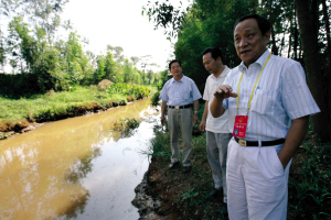 三位暗访的省人大代表在排放口仔细观察。“这里肯定存在偷排污水现象,否则怎么会淤积这么厚的黑泥?”省人大环资委副主任委员潘大林说。他还指给记者看,排放口上游河岸两边是黄泥,到下游就变成黑色,水面也开始漂浮油污。