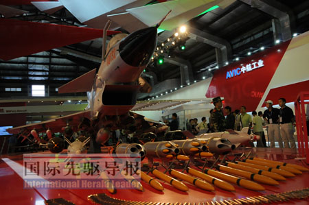 国际先驱导报记者王攀发自珠海 伴随着雷鸣般的发动机轰鸣声,歼―10战机在短距离滑行之后,便急速拉起,几乎以近似垂直的角度直冲云天……