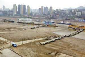 朝天门以往枯水期都能看到大片沙滩。(资料图片)本报记者 杨新宇 摄