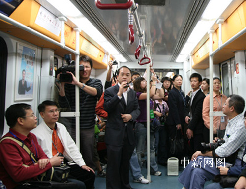 中新网广州11月10日电 10日上午,参加全国重点网络媒体广东行的记者一行数十人,参观并乘坐了广州地铁三号线。据介绍,广州计划在2010年亚运会开幕之前建成230公里地铁。