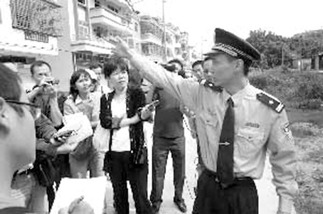 大约3个小时后,在斗门区白蕉派出所,珠海市警方举行了媒体见面会。见面会上,11月5日开枪击毙泥头车司机骆某的警察余新化终于亮相,并前往开枪现场向记者讲述了开枪过程。