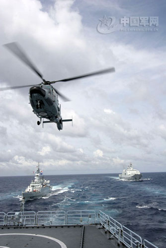 南海舰队某部演练舰载直升机多项高难课目(组图)(2)