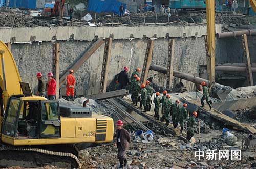 记者了解到,中铁一局、中铁二局、中铁隧道局等中铁集团下属单位的施工人员也已赶来加入施救大军,配合基坑里淤泥的挖掘工作,挖掘工作尽显人性化。他们先用铁锹在基坑底部按东西方向挖出一道道密集的约50公分深的壕沟,如果没有发现遇难者遗体,再使用挖掘机将约50公分厚的淤泥铲除,接着又是人工挖掘,周而复始。(完)