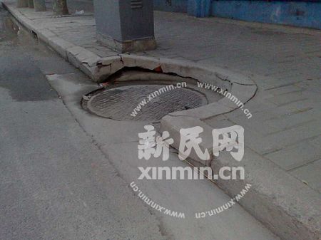 万航渡路康定路口地面已翘起 新民网 胡彦珣 摄
