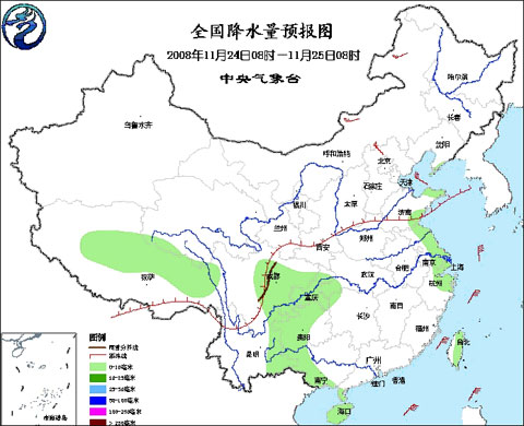 2008年11月24日8时—11月25日8时全国降水量预报图