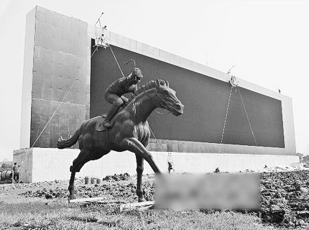 11月15日的武汉,东方马城。三座铜像的旁边,全国最大的户外电视显示屏这一天悄然落成。