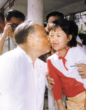 1986年8月20日,邓小平同志视察红桥区居民小区时亲吻在这里游玩的孩子。