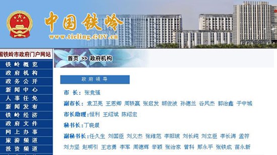 记者根据网站上提供的电话拨打过去,工作人员表示,铁岭现任领导的名单与网站上是一致的,内容是由政府提供的。