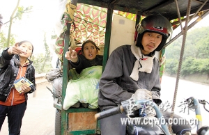 三轮车队不得不重返210国道。四辆三轮车上,包括司机,共搭载了11人。一辆车便是一个家庭单元:夫妻或者父母儿女。一行人上月18日从广东出发,一路经广西、贵州,到昨日,已奔波了14天。