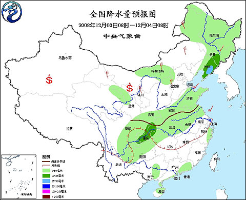 2008年12月3日8时—12月4日8时全国降水量预报图