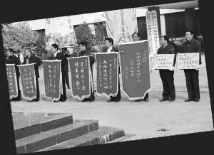 百姓自发送书记,锦旗、万民伞、清官旗齐了