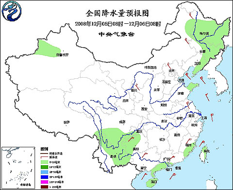 2008年12月5日8时—12月6日8时全国降水量预报图