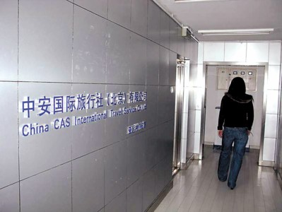 昨日下午,记者前往北京北四环附近小营的一处办公楼,按照相关注册信息或相关公司网站提供的信息,美国美之旅电子商务有限公司、美国美洲集团北京代表处、中安国际旅行社亚运村门市都在这栋办公楼的17楼。记者来到17楼,在电梯口便看到了墙上显眼的“中安国际旅行社亚运村门市”字样。走进该机构办公室后,只见座位整齐的办公室内十几双眼睛齐刷刷直视过来。门口的男性员工和前台接待小姐异口同声地问:“你们是谁?你们是干什么的?”