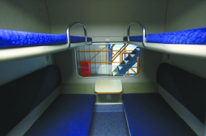 每节车厢被分割成10个独立包厢,宽敞的包厢里上下铺共有4张床位,每个床脚都有独立电视,包厢门口还加装了呼叫系统。将于本月21日首发的京沪、京杭卧铺动车组,增加了大量人性化设计。昨日,本报记者提前上车探访了这趟国内最高级的卧铺车。