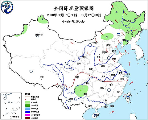 中央气象台2008年12月16日06时发布未来三天天气预报: