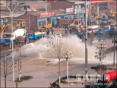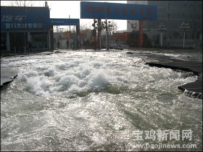 12月16日中午12点40分左右,位于陈仓大道底店段引水、输水管道再次发生爆管。这是近一月来发生的第三次爆管,我市渭河以北地区的居民暂停用水。