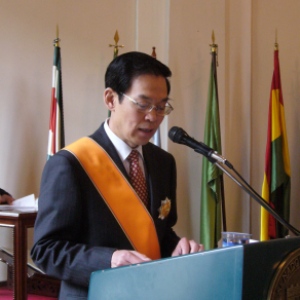 李长华大使在答谢词中表示,这一殊荣不仅属于他个人,也代表了哥议会对中哥友好合作成果的充分肯定,同时象征着中哥两国人民、政府和议会之间的深情厚谊。李长华大使回顾了一年来两国政府、议会之间的友好交往,认为目前双边关系正处于历史最好时期,并重申两国元首会晤时胡锦涛主席就推动双边关系发展提出的4个方面建议,强调中方愿同哥方一道继续密切两国全面友好合作关系,着力深化各领域务实合作,以更好的造福两国人民。