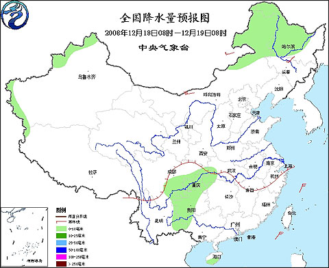 2008年12月18日8时—12月19日8时全国降水量预报图