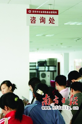 时近年末,深圳市社保中心个人服务窗口显得很忙碌。资料图片