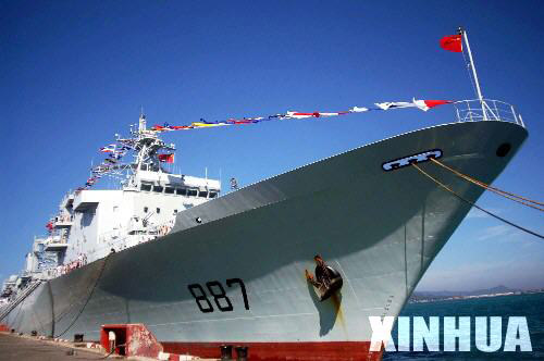 资料图片:“微山湖”号综合补给舰。(图片来源:新华网)