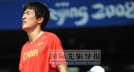 蹙眉难展,刘翔的失落亦是所有中国人的失落。 李尕/摄