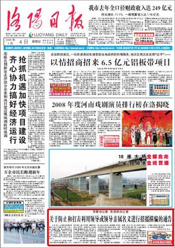元旦假期过后第一天,《洛阳日报》一版发布市委办公室、市政府办公室通告,严厉打击以市领导或领导亲属名义进行所谓招商引资、介绍工程、找基层办事,甚至伪造领导批示进行招摇撞骗。网友称:政府敢于公开,是一种进步表现。
