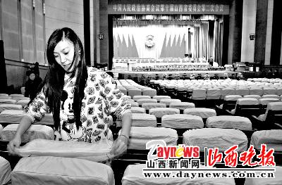 今日上午8时,记者在本次大会的会场之一太原市工人文化宫看到,条幅已经拉起,拱门也已竖起。工作人员正在更换白色座套,主席台上已经摆满鲜花,准备基本就绪。在委员的接待宾馆之一政协宾馆,会务、保卫工作人员也已经就位,部分代表正在办理报到手续。委员张书庆告诉记者,从登记到入住只花了两三分钟,他准备用剩下的时间再研究一下自己的提案。