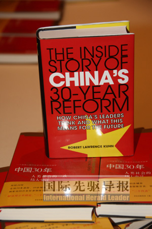 库恩:这一次,因为我们要赶上改革开放30周年这个时间,所以我只好写完第二稿后,就把很长的稿子交给了中文和英文出版商。对于中文出版商来说,他们有所谓的中国速度,出版的速度很快。相比较,外国出版的速度会比较慢。到最后成书时,两个版本差不多都删除了50%原稿的长度。