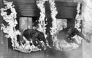 “雪豹”练胆魄、练心理的课目更令人窒息。考核新队员,指挥员在30米高的楼上,架起一条5米长、50厘米宽的木板,让队员走到悬空的一端,回答3个问题,答对者方能过关,稍有惊慌必定张口结舌。枪声震耳的射击场上,一名队员双手各持一根筷子,插上西红柿,伸直与身体呈十字水平,另一名队员实弹射击,将西红柿打得凌空开花……