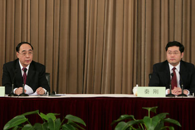 中新网1月22日电 据外交部网站消息,2009年1月22日,外交部举行中外媒体吹风会。外交部部长助理吴红波介绍温家宝总理1月27日至2月2日对瑞士、德国、西班牙、英国和欧盟总部进行正式访问并出席世界经济论坛2009年年会相关情况。新闻司副司长秦刚主持吹风会。