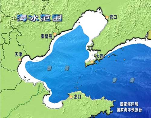 受寒潮影响,预计2009年1月24日后海上冰情发展迅速。据国家海洋预报台专家预测,渤海和黄海北部沿岸海冰冰量将明显增多,至26日达到最盛,其中渤海辽东湾海冰范围从50多公里迅速发展至110多公里,(平整冰一般冰厚10至15厘米,最大30厘米;)渤海湾、莱州湾和黄海北部海冰范围从10多公里发展至30多公里,(平整冰一般冰厚5至10厘米,最大20厘米)。渤海及黄海北部沿岸各港口和冰区内海上采油平台均受海冰不同程度的影响,请海上运输部门和相关生产单位做好防冰抗冰工作,确保航行和生产安全。(记者陆敏)