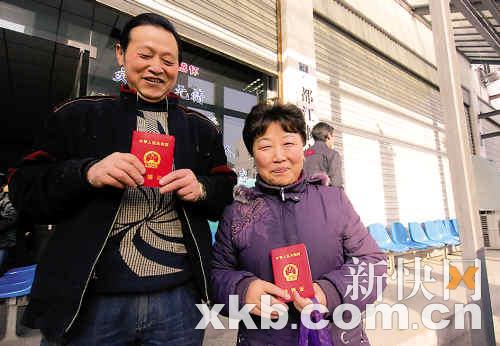 昨日(年廿九),他一大早来到了都江堰市的婚姻登记处。“我们还住在危房里,村里说要住到新房,必须提供户口本、房产证和结婚证,可我们的结婚证在地震的时候被埋了,没挖出来。”张德全说。