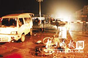 昨天凌晨零时14分,记者接到报料后连夜赶到事发现场阜宁县益林镇中心大街,在事发道口看到,一辆轿车、一辆面包车、一辆三轮车和一辆电动车受损严重,零部件散落在道口附近,有关部门正在清理事故现场。