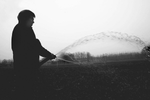 趴在麦田里的水带和麦苗一样无精打采,有的地方喷着几柱“小喷泉”。陆凤翔说,水带多年不用,破损的地方多了,不过漏水也是漏到田里。村里不少人家请人帮忙浇地,陆凤翔不放心别人做的活,觉得自己浇得会更仔细点,把麦田每一寸地都浇到、浇透,让渴坏了的麦苗饱饱地喝一次水,能快点返青。