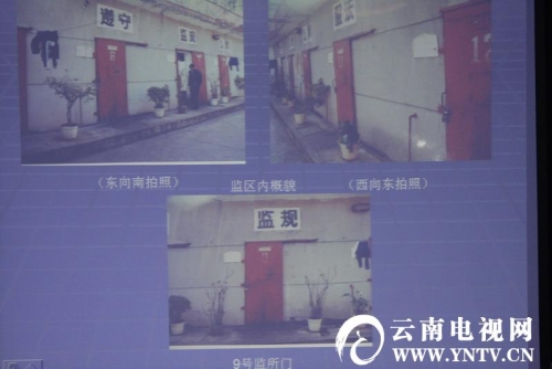 在今天上午的通报会上,晋宁县公安局进行了通报情况,死者李乔明,25岁,白族,死亡原因是因为同监舍在放风时候玩游戏,因为在游戏时发生口角,其中一名踢了死者一脚,导致撞在铁柱上,导致头部受伤致死。晋宁县公安局制作事件发生地点图片,提供给调查团一行。(来源:云南电视网)