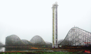 据介绍,木质过山车是过山车的鼻祖,这种木质的过山车在运行中会发出碰撞声,让人感觉更惊险更刺激。(陈正宝)