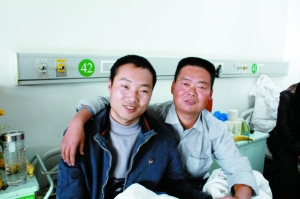 2月20日,龙晓伟躺在病床上,拿着两个手机交替着发短信,回复亲友的问候。