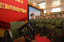 北京军区某炮兵旅参加了从开国大典到建国50周年庆典的13次国庆阅兵。现任参谋长赵德斌介绍说,该旅组建于1944年3月,经历过抗日战争、解放战争和朝鲜战争,主要任务是保卫首都安全和实施机动防卫作战,是中央军委指定的全军唯一的迎外炮兵部队。在开国大阅兵上他们是牵着骡马炮、拖着战场上缴获的‘万国牌’杂牌火炮通过天安门的。1959年国庆10周年阅兵,这支部队驾驶的是我国制造的火炮,但队列中仍然有老式榴弹炮、高射炮;1984年国庆35周年阅兵,这支部队展示在世人面前的,是清一色我国自行设计制造的包括国产火箭炮在内的机械化方阵。1999年国庆50周年阅兵,这支部队再次阵容一新,主战火炮全部更新换代为自行火炮。其中,两人操作的一门自行火炮,火力足以相比上世纪80年代的一个炮兵连。这种巨大变化表明,我军建设经历着一场深刻革命,正由数量规模型向质量效能型转变,由人力密集型向科技密集型转变。
