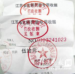 按照小朱的质疑,如果不开政府规定的收据,那么这笔罚款就有可能落入到个人的私囊,或者流入至单位的“小金库”中。为此,记者提出看看行政执法人员近段时间已开具的罚没单及罚款收据存根,里面是否有朱先生等人的收据。办公室的一名副科长答应拿存根给记者看,但出去后又空手返回。这名副科长抱怨称,执法队员不愿意给,他也没有办法。他介绍说,尽管执法队员名义上由他们领导,但还隶属上级白下区行政执法大队的管辖,对于执法队员不愿意出示存根的做法,他也无可奈何。
