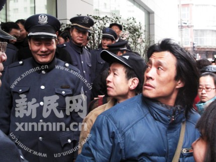 下午2时多,记者接到网友的消息,九江路上杭州银行,市民为得到面值为100元一套的旅游券,前呼后拥,几百人拥挤银行门口,银行不得不求助于警方维持治安。