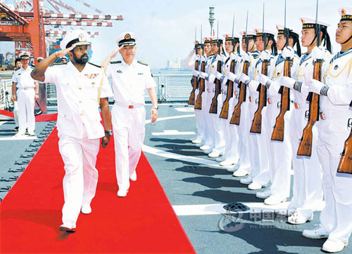 赴巴基斯坦参加“和平-09”海上多国联合军事演习的“广州”号导弹驱逐舰今天停靠斯里兰卡科伦坡港,进行第二次补给。