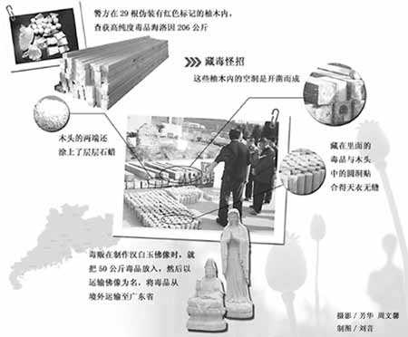 在佛像和方木中暗藏海洛因256公斤,数量如此之大的海洛因到底从何处来?根据警方的侦破资料,这批重达256公斤的毒品均来自缅甸“金三角”一个号称“毒枭之王”的人。2005年9月22日,中缅联合专案组与老挝警方密切合作,在老挝川圹省将“毒枭之王”韩永万抓获。