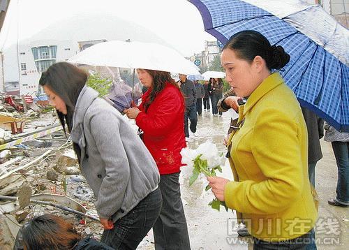 昨(1)日,北川县阴雨绵绵,北川县法院40名干警来到北川老县城,祭奠在去年地震中遇难的30名干警。大家把鲜花摆在废墟旁,在静默中向逝去的战友表示哀思,并决心以更加勤奋的工作缅怀战友。
