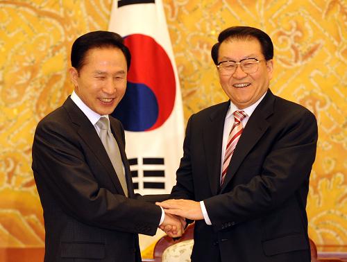 李明博对李长春提出的四点建议表示赞同。他说,我去年就任总统后已三次访华,这充分表达了我本人对发展韩中关系的坚定信念和韩国人民期待两国世代友好的强烈愿望。韩方认为中国的发展对韩国来说是重要的机遇,两国合作前景广阔,欢迎并高度评价中国在地区和国际事务中发挥积极而重要的作用。李明博表示韩方支持中国为应对全球金融危机采取的一系列重要措施,愿采取积极行动,认真落实两国最高领导人的重要共识,大力推进双方在各领域的互利合作,共同为促进亚洲的繁荣稳定作出贡献。