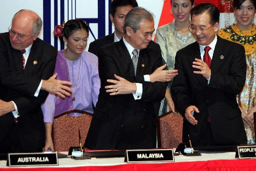 2005年12月14日,首届东亚峰会在马来西亚首都吉隆坡举行,来自东盟十国、中国、日本、韩国、印度、澳大利亚和新西兰的国家元首或政府首脑与会。会上,与会各国领导人签署了《东亚峰会吉隆坡宣言》,讨论通过了关于防控和应对禽流感的宣言,并就加强合作、相互依存、共谋发展达成广泛共识。温家宝总理在首届东亚峰会上发表了题为《坚持开放包容 实现互利共赢》的讲话。