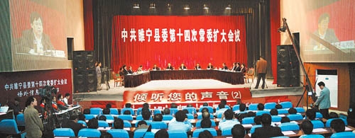 ¡¡¡¡¶Ôî¡ÄþµÄÐí¶à¸É²¿À´Ëµ£¬2008Äê8ÔÂ16ÈÕ¡°ÇãÌýÄúµÄÉùÒô¡±»¹²»ÊÇ×î´óµÄ¿¼Ñ顣ͬÄê10ÔÂ11ÈÕ£¬î¡ÄþÏØÎ¯µÚÊ®ËĴγ£Î¯(À©´ó)»áÒ飬ÊÇÒ»´ÎÈÃÐí¶à¸É²¿¡°´ÓδÕâô½ôÕŹý¡±µÄ»áÒé¡£²Î¼ÓÕâ´Î»áÒéµÄ£¬³ýÁËÏØÁìµ¼°à×ÓÍ⣬»¹Óи÷»ú¹Øµ¥Î»ºÍȺÖÚ´ú±í¡£