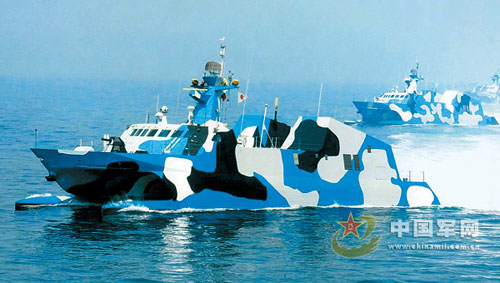 仲春,东海某海域,一艘艘身披蓝色迷彩的新型导弹快艇似“无影利剑”,以雷霆万钧之势对“敌舰”实施突击,在强电磁干扰条件下实射2枚导弹,准确命中目标。至此,海军第一支某新型导弹快艇大队形成战斗力,以优异成绩通过了总部组织的作战能力检查验收。
