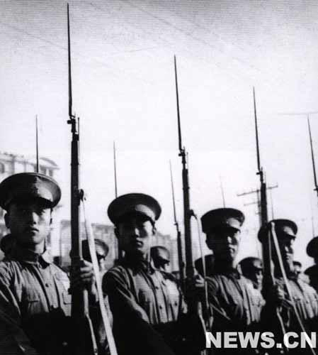 中国人民如今已拥有现代化的国防武装,这是中国人民力量划时代的发展。全场群众为保卫祖国和世界和平的力量的增长而一再欢呼。